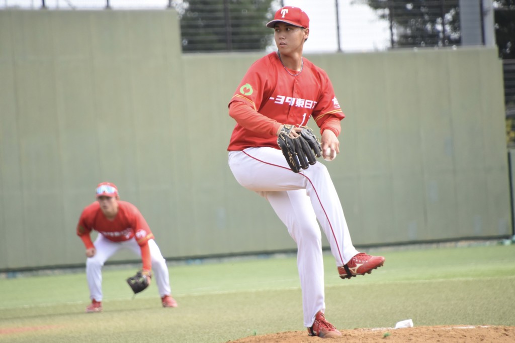 10月4日の準決勝。日本製紙石巻打線を単発3安打に抑えた。前半は直球で押してゴロアウトを量産。中盤までに瀬戸泰地(26=桐蔭横浜大)の3点本塁打などで4点の援護をもらうと、後半は得意球のチェンジアップを多投して相手打者を手玉に取った。