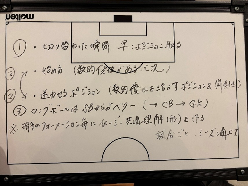 シーズン開幕前のキャンプ宿舎で、小川大貴(元ジュビロ磐田/現松本山雅FC)と自室のサッカーボードに向かい、構想を書きなぐった。