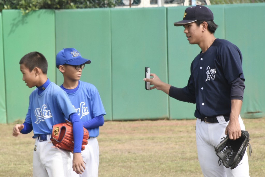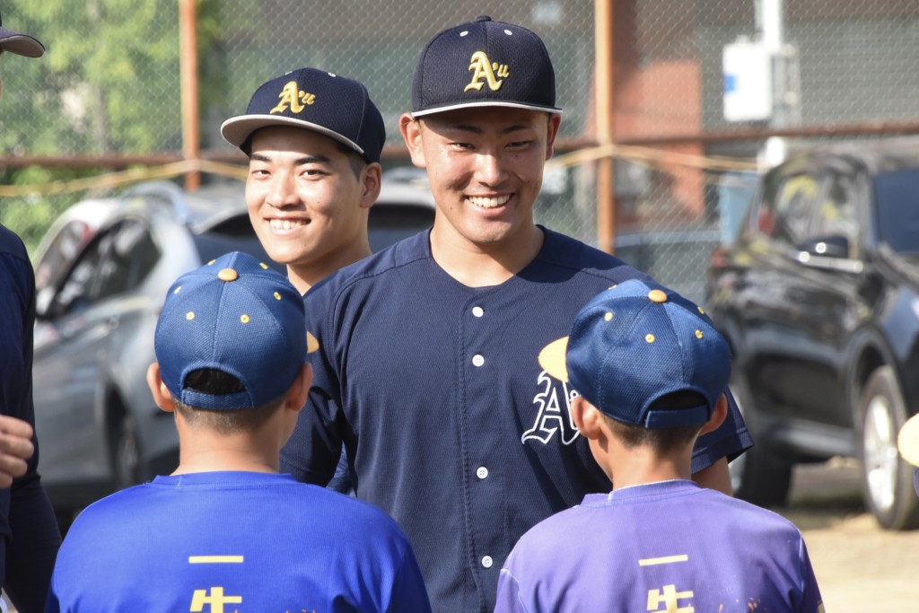投手では、野球教室で熱心に指導する石川大樹(3年=駿台甲府)の姿が目立った。高雄大学戦では救援登板し4回5奪三振1失点と好投。試合後には対戦相手からカーブの握りや投げ方を聞かれる場面もあった。「言語の違いがあり難しく感じました」と話しつつも、工夫を凝らして丁寧に答えた。
