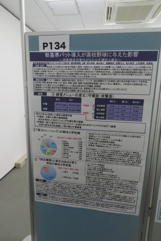 鹿児島商「日本野球学会」で、新基準金属バットがもたらした高校野球の変化について発表