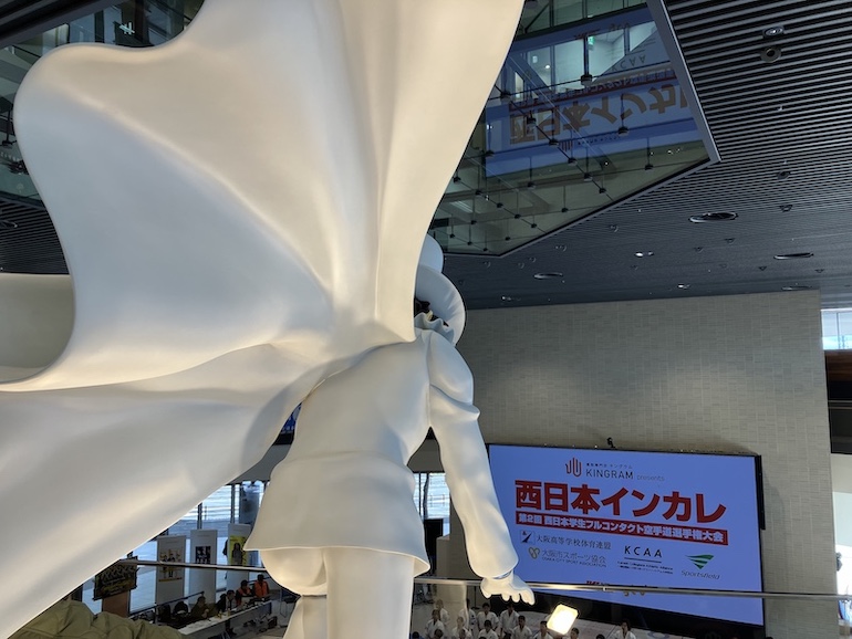 『第2回西日本学生フルコンタクト空手道選手権大会(西日本インカレ)』が今年も行われた。JKC(全日本フルコンタクト空手コミッション)と読売テレビが共催。テレビ局エントランスロビーの特設コートで行われた闘いは、普段の大会とは一味違う盛り上がりに包まれた。