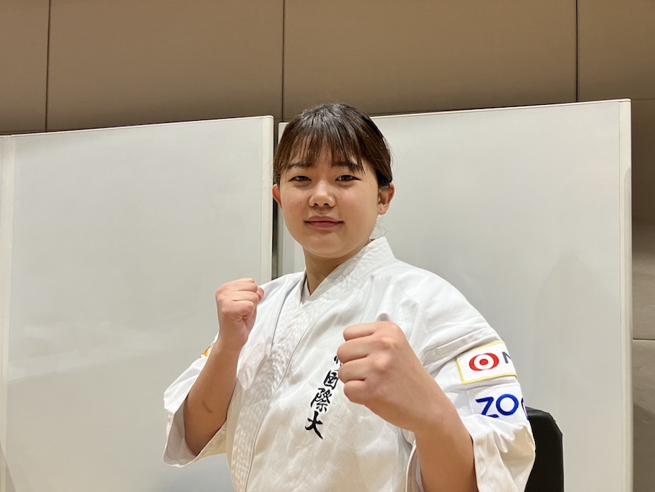 中山は小学1年から空手を始め、「大会で勝つ」ことを目指して戦い続けてきた。中学3年時にジュニア大会で優勝した時の光景を忘れずに日々の精進に励んでいるという。