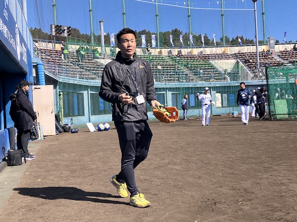 「西武は弊社ギアを使用して頂く選手が多く、以前からサポートさせていただいてます。球団スタッフの方々をサポートする形で、練習の設営や球拾い、撤収等が主な仕事です。また選手・関係者の方が効率良く練習でき、気分良く、少しでも調子を上げてもらえるように、備品の改良点やギアの開発のためのヒントを探すことを目指しています」