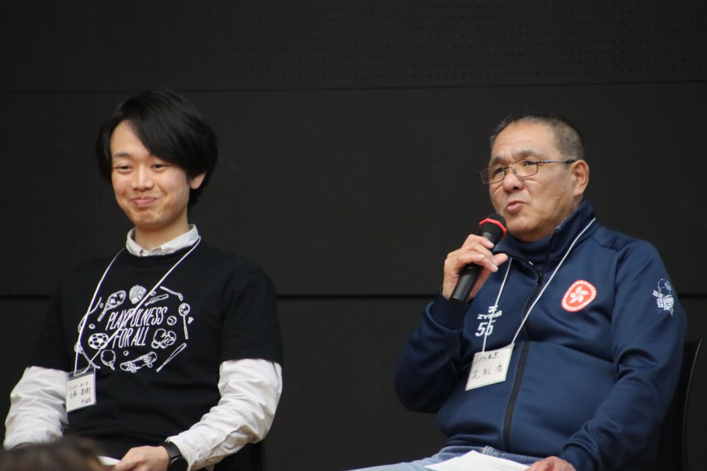 終盤からは鈴木氏が推薦したスピーカーとして、本活動に10年以上関わっている花渕信氏とプレイフルスポーツ・コーディネーターとして活動する毛塚泰樹氏が登壇し、協会を通じた活動について共有が行われた。