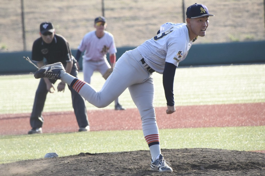 1戦目ではエース・小金井凌生(4年=日体大荏原)が9回2安打11奪三振無失点と圧巻の投球を披露した。味方のミスで走者が溜まる場面もあったが、ツーシームを有効的に使いながら落ち着いて0を連ねた。